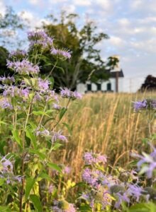 Bee-Balm-in-Grassy-Hill-Preserve-with-church-in-background